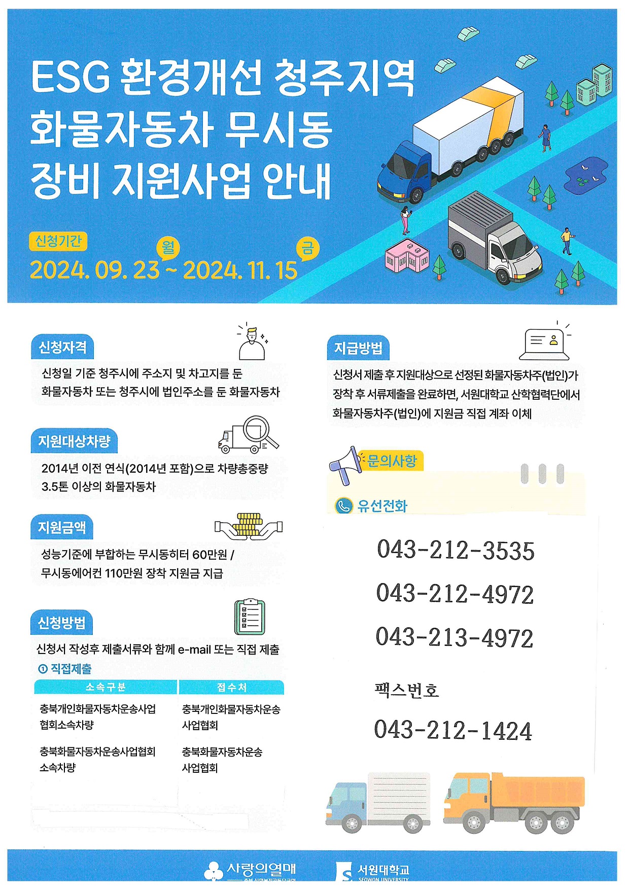 ESG환경개선 청주지역 화물자동차 무시동장비 지원사업 안내
